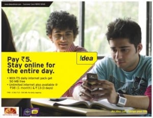 While Idea Cellular’s Prepaid subscribers in Mumbai circle can opt new GPRS Pack at Rs 5 for daily Internet access which gives upto 70 MB of usage. Idea subscribers in Mumbai can activate it by dialing *777*1046#. Rs 5 will be deducted from the prepaid account.